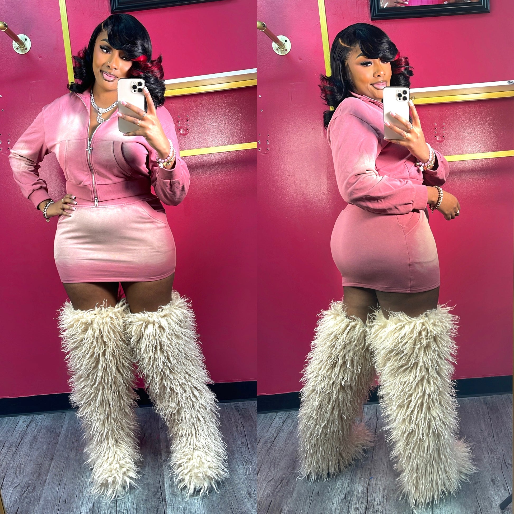 Super cute stylish skirt set goes perfect with our Beige Over knee boots true to size wearing largeÂ